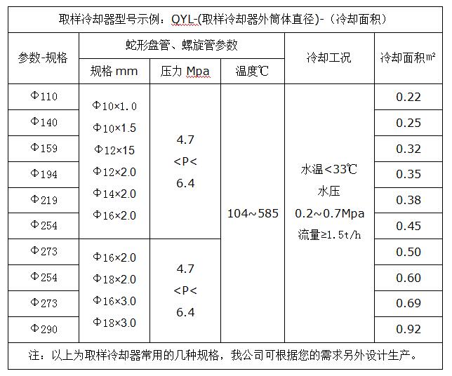 二、爐水取樣冷卻器設(shè)備型號(hào)與規(guī)格
